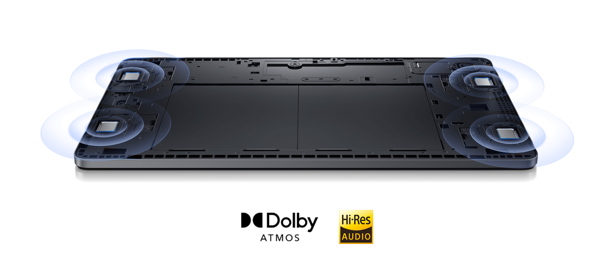 4 динамика образуют объемный звук в альбомном и портретном форматах отображения. Создавая звучание как в кинотеатре, динамики обеспечивают мощный звук и прямое воздействие.