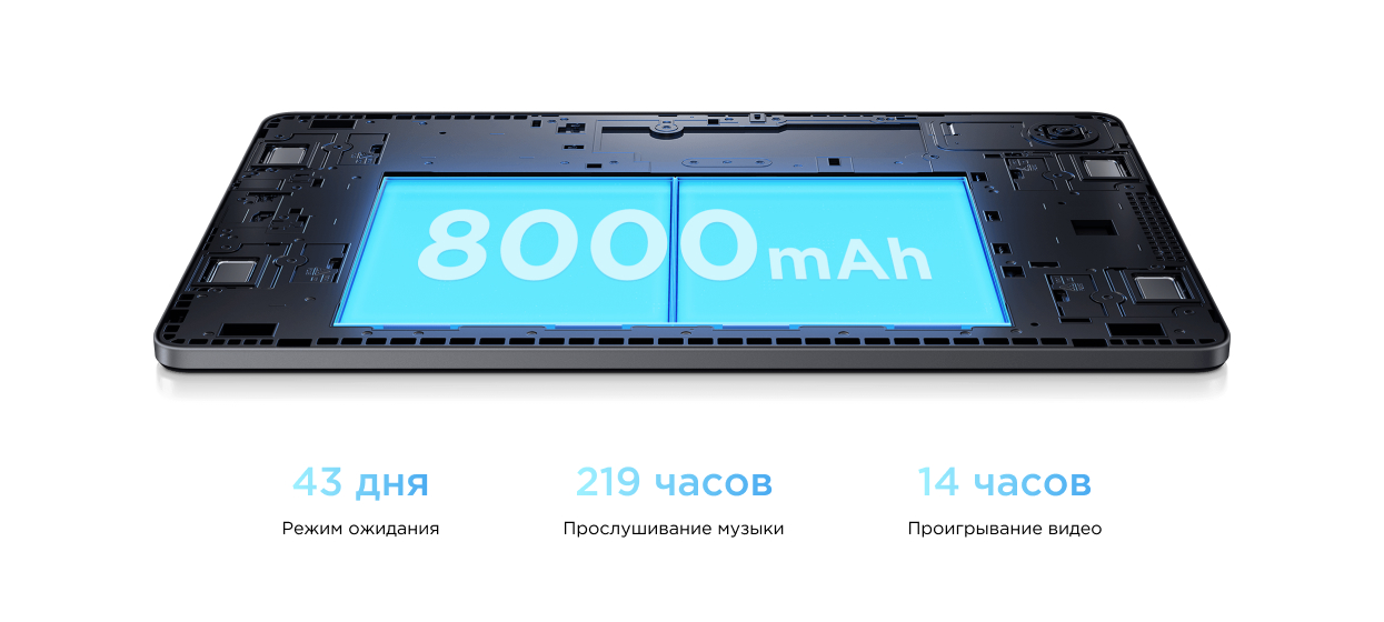 Аккумулятор емкостью 8000 мАч (тип.) с длительным сроком службы обеспечивает поддержку в течение всего дня, каждый день. Не беспокойтесь о подзарядке, независимо от того, учитесь вы или играете. Поддержка быстрой зарядки 10 Вт позволяет быстро зарядить аккумулятор.