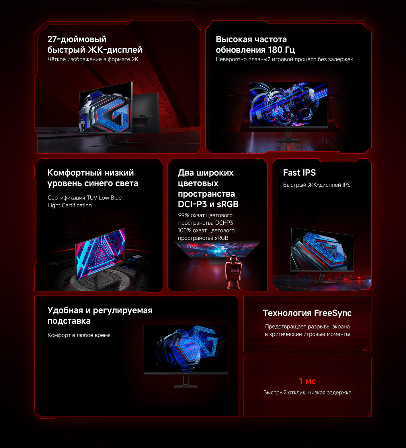 Монитор оснащен 27-дюймовым ЖК-дисплеем Fast IPS с разрешением 2560 x 1440 широки углом обзора в 178°, что позволяет получить невероятный пользовательский и игровой опыт.